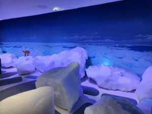 マイナス15度の流氷体験テラスで本物の流氷を100トン展示
