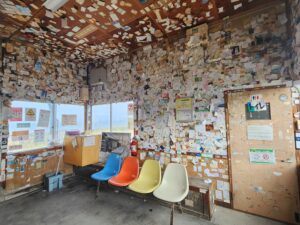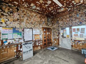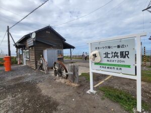 オホーツク海に最も接近する北浜駅は、海岸線まで約20メートル。まさに「オホーツク海に一番近い駅」。真冬には駅前の海岸に流氷がびっしり訪れ、陸と海の境目がわからなくなるほど。いかにも「北の駅」といった風情の駅舎には、使い終わった定期券や切符、名刺や写真などが所狭しと貼られています。