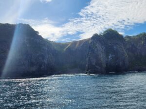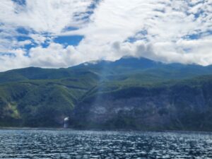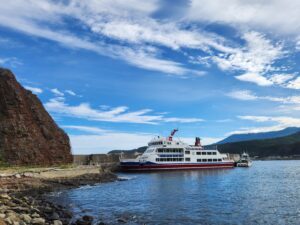 おーろら(491t)は陸路から辿り着けない知床半島の先端・知床岬航路やルシャ湾航路、カムイワッカの滝航路などが設定されています。数々の滝や奇岩、知床連山の雄大な景色を堪能できます。