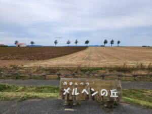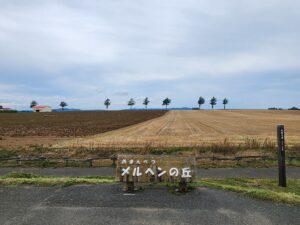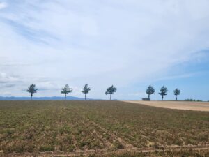 7本のカラマツが並ぶ絵本のようなこの風景。女満別空港から車で10分のところに位置しています。近くには道の駅「メルヘンの丘めまんべつ」があります。「白い恋人」ソフトクリームに舌鼓。