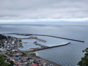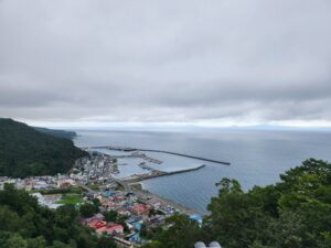 羅臼市街を見下ろす海抜167メートルの高台にある展望塔。双眼鏡やテレビ望遠鏡が設置されており、羅臼漁港や、羅臼岳、知床の山々、国後島の雄大な姿を一望することができます。