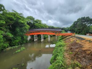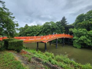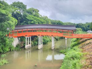 西参道にある屋根がついた神橋です。昔、呉の国の人が掛けたともいわれ、この名があります。鎌倉時代より以前からある橋です。