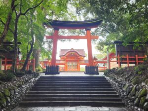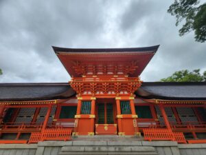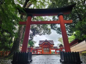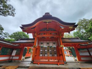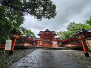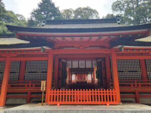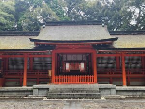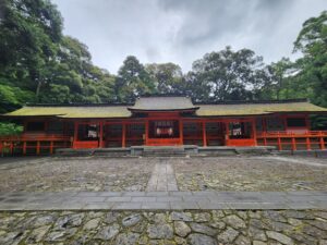 国宝がある「宇佐神宮本殿」が鎮座する上宮。宇佐神社は上宮(じょうぐう)と下宮(げぐう)があり、それぞれの本殿には3柱の神様が祀られており、「一之御殿」「二之御殿」「三之御殿」に分かれています。ちなみに、宇佐神宮では一般的な参拝作法より拍手が多く、”二拝、四拍手、一拝”が古くからの習わしとされています。