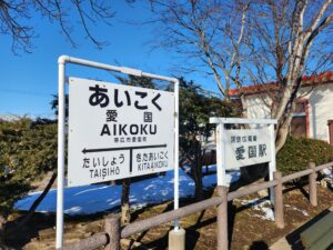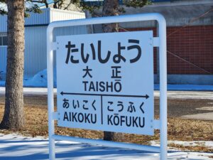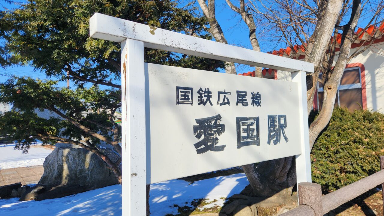 旧国鉄広尾線上にあった駅で、1987年の広尾線廃止とともに廃駅となりましたが、現在は「大正ふれあい広場」として整備され、短いホームや古い擁壁、記念碑が残され、広尾線の面影を残しています。特に有名な「愛国駅から幸福ゆき」の切符で知られる幸福駅の近くに位置し、広尾線は帯広~広尾間を結び、1987年に廃止された路線。
