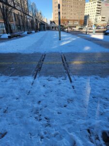 北口駅前に古い線路が敷かれています。このレールは、十勝の発展と共に歩んだ鉄道の歴史を記念し、1905年(明治38年)に最初に鉄道が敷設された位置に復元したものです。つまり最初の根室本線です。