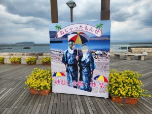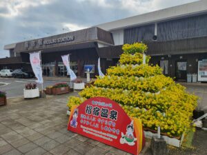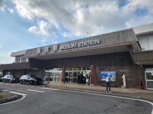 鹿児島県指宿市の湊に設置された駅で、指宿温泉の玄関口であり、指宿枕崎線の電車が運行されています。鹿児島中央駅と指宿駅を結ぶ「いぶたま」の愛称でも親しまれている観光列車・特急「指宿のたまて箱」が、1日3往復運行しています(全席指定席)。駅前には、「いぶたま」をデザインした白と黒のポストの映えスポットや温泉郷らしく足湯が設置されており、旅の疲れを癒やしてくれます。