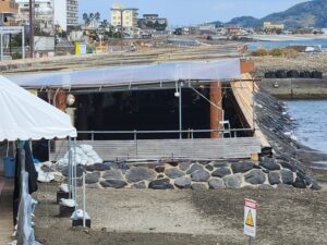 世界でも類を見ない天然砂むし場のほか、大浴場やサウナを備えた指宿最大の砂むし温泉立ち寄り施設。大潮の干潮時には波打ち際で、満潮時や天候の悪い日は屋根付きの砂むし場で砂浴が可能。砂の重さと温かさ、波の音が心も体も和ませてくれます。砂むし湯治は古くから行われており、1843年(天保14年)に編纂された「三国名勝図会」にも高い効能が記されています。泉質はナトリウム塩化物泉。泉質は80℃と高温のため、潮が引いて行く時には砂浜に湯煙が立ち上がる幻想的な風景が見られます。
