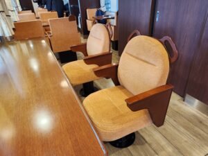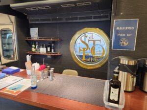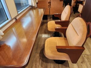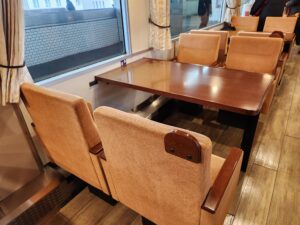 1号車+バーカウンター・・・紅葉に染まる宮島の千畳閣をイメージした落ち着いた雰囲気。
