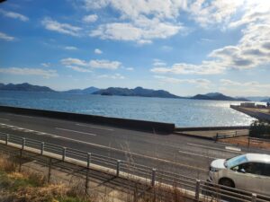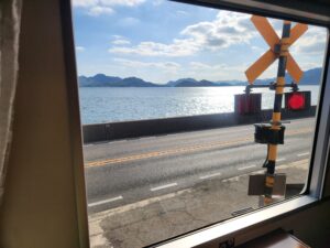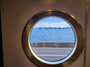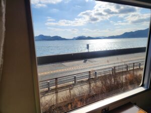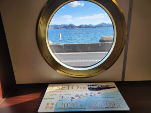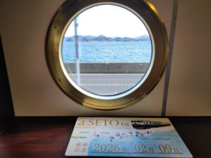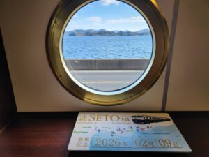 船をイメージした丸窓から瀬戸の夕日を眺めることができます。
